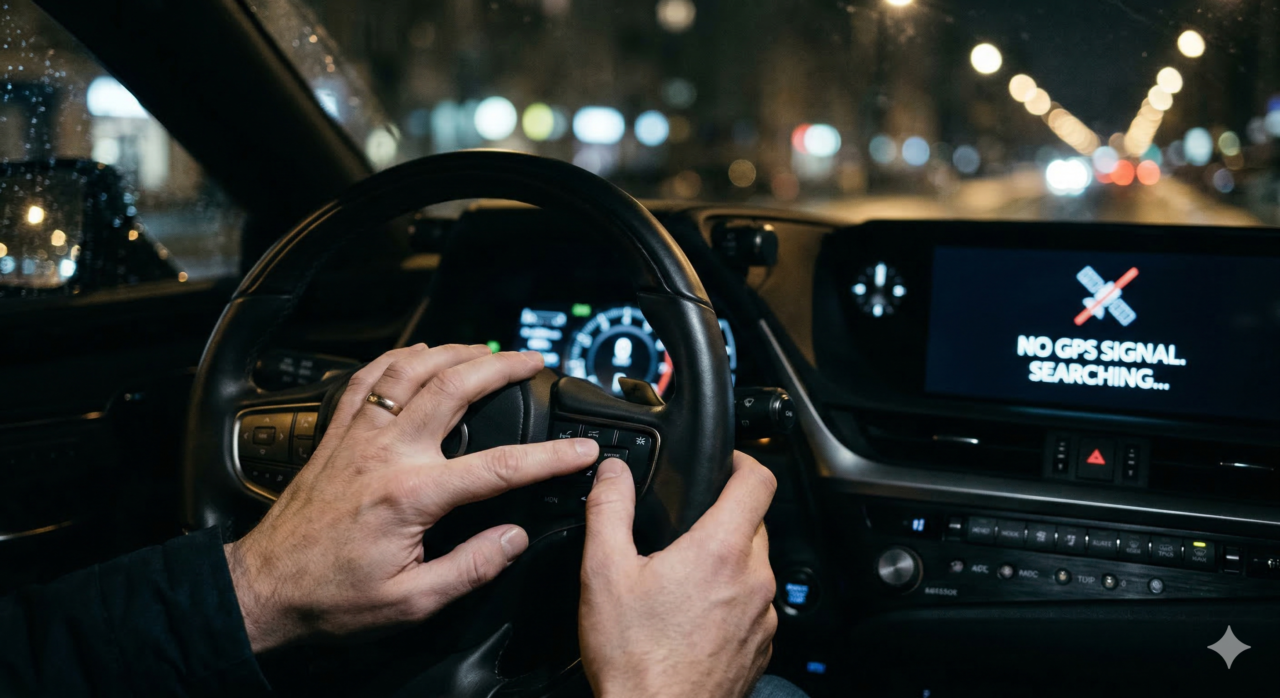 - Ślepa mapa: Twój telefon pokazuje, że auto wciąż stoi pod domem, podczas gdy ono właśnie wjeżdża do „dziupli” lub kontenera.